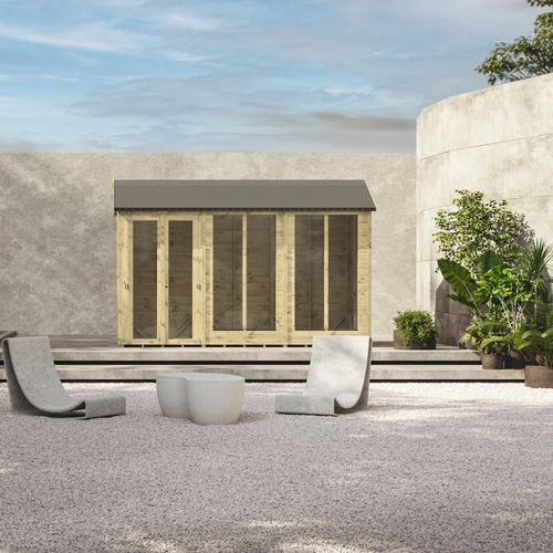 Enhance your garden with our stunning range of Premium Summer Houses built from high grade Scandinavian tongue and groove timber which is sustainably sourced and British engineered. Make it your way by customizing where you would like to put the windows and doors making this unique to you. 20 year guarantee.