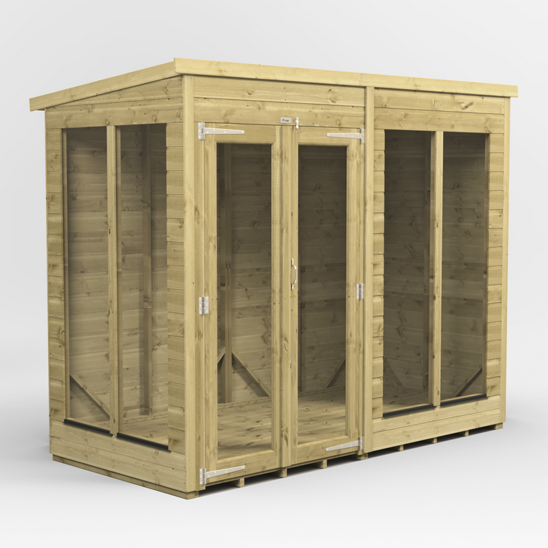 The Premium Pent Summerhouse offers a stylish and versatile space for your garden. Personalise the layout as you wish by choosing door and window placements during assembly, with no need to decide ahead of time. Effortless and flexible.
